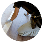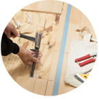 部屋の端に少しの隙間も出来ない様にフローリング材をカットし、カンナで狂いが無い様丁寧に調整します。天然木の風合いを活かしたフローリング材で数パターンの木目がある場合は、同一パターン同士が隣同士にならない様考慮するなど、場合に応じた最適なフローリング張り替え作業を行います。